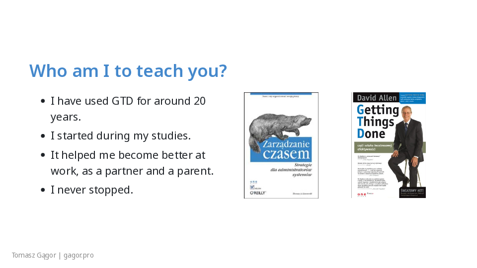This was a long introduction and I drifted a bit from GTD, but the point is the same: GTD changed how I organize work as a sysadmin and later as a DevOps engineer. I later received “Getting Things Done” as a Christmas present and learned even more. That all started almost 20 years ago!